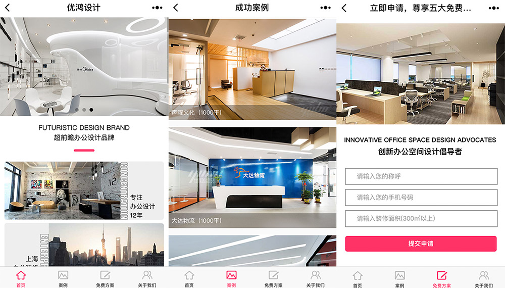 这是一款企业展示型小程序,重点介绍公司业务,和做过的装修案例,配合微信推广,提升企业形象的同时也可以带来更多的业务。